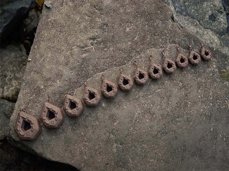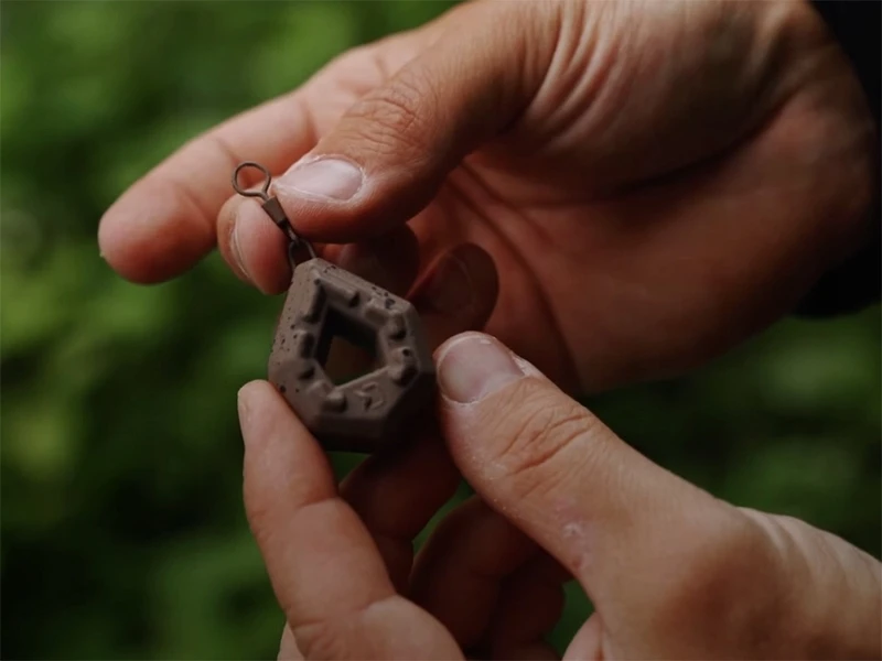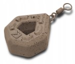 Innowacyjny ciężarek ołowiany zaprojektowany przez firmę Delphin, odpowiedni do łowienia na nierównym terenie lub na wodach płynących. Dzięki unikalnemu kwadratowemu kształtowi udało nam się stworzyć kompaktowy ciężarek, który ma taką samą wagę, a jednocześnie jest mniejszy niż inne ciężarki dostępne na rynku. Gwarantuje to doskonałe właściwości rzutowe i szybkie tonięcie. Aby wydłużyć rzuty i uczynić je bardziej precyzyjnymi, dolna część została poszerzona. Nacięcia na głównej powierzchni nie pozwalają mu ślizgać się po dnie. Otwór pośrodku pozwala na szybsze tonięcie. Powierzchnia ciężarka pokryta jest brązowym kolorem z czarnymi plamkami dla lepszego kamuflażu na dnie wody.