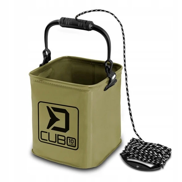Delphin CUBO to praktyczne wiadro, wykonane z wodoodpornego materiału EVA o minimalnych wymiarach transportowych, dzięki czemu zajmuje bardzo mało miejsca w Twoim ekwipunku. Może być używany do polewania ryb na brzegu, ale także do transportu wody użytkowej, przygotowań zanęty czy też bez problemu przechowasz w nim różne akcesoria podczas wyprawy nad wodę. Charakteryzuje się kwadratowym kształtem, w którym mieści się więcej wody niż w wiadrze o okrągłym kształcie o takich samych wymiarach transportowych. Zaletą takiego kształtu jest również możliwość polewania wodą wolniej przez róg lub mocniej z całej krawędzi wiadra. Dzięki praktycznemu uchwytowi, na który nawinięta jest linka, możliwe jest czerpanie wody nawet w trudnym terenie z większej odległości lub z łodzi. Zaletą jest również solidna plastikowa rączka, dzięki której bez problemu można przenosić wypełnione CUBO. Delphin CUBO jest sprzedawany w dwóch rozmiarach: 5 L i 10 L.