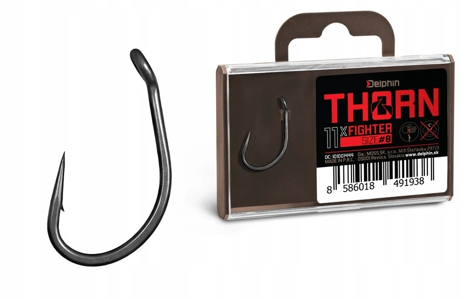 Delphin THORN to linia premium haczyków karpiowych najwyższej jakości. Dzięki nowoczesnym technologiom, które zostały zastosowane przy produkcji haczyków są one synonimem bezkompromisowej wytrzymałości i maksymalnej ostrości. Haczyki z serii THORN mają powierzchnię tytanową, która nadaje im matowo-szarą powierzchnię, która jest również idealnie gładka, co ułatwia zaciecie karpia. TitanX dba również o wzmocnienie i trwałość całego haczyka.