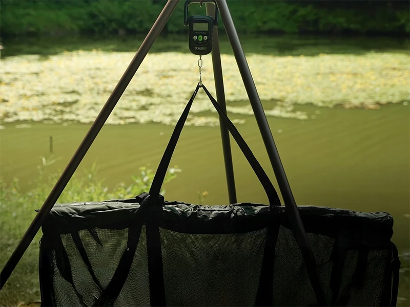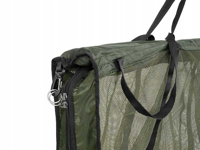 Posiada pływaki na krawędziach, aby bezpiecznie utrzymać rybę w wodzie, podczas gdy Ty przygotowujesz się z aparatem. Główna część ma miękką siatkę, która jest delikatna dla ryb. Podczas używania lub podnoszenia worka cały nadmiar wody jest odprowadzany, co zapewnia bardziej precyzyjne wyniki ważenia.