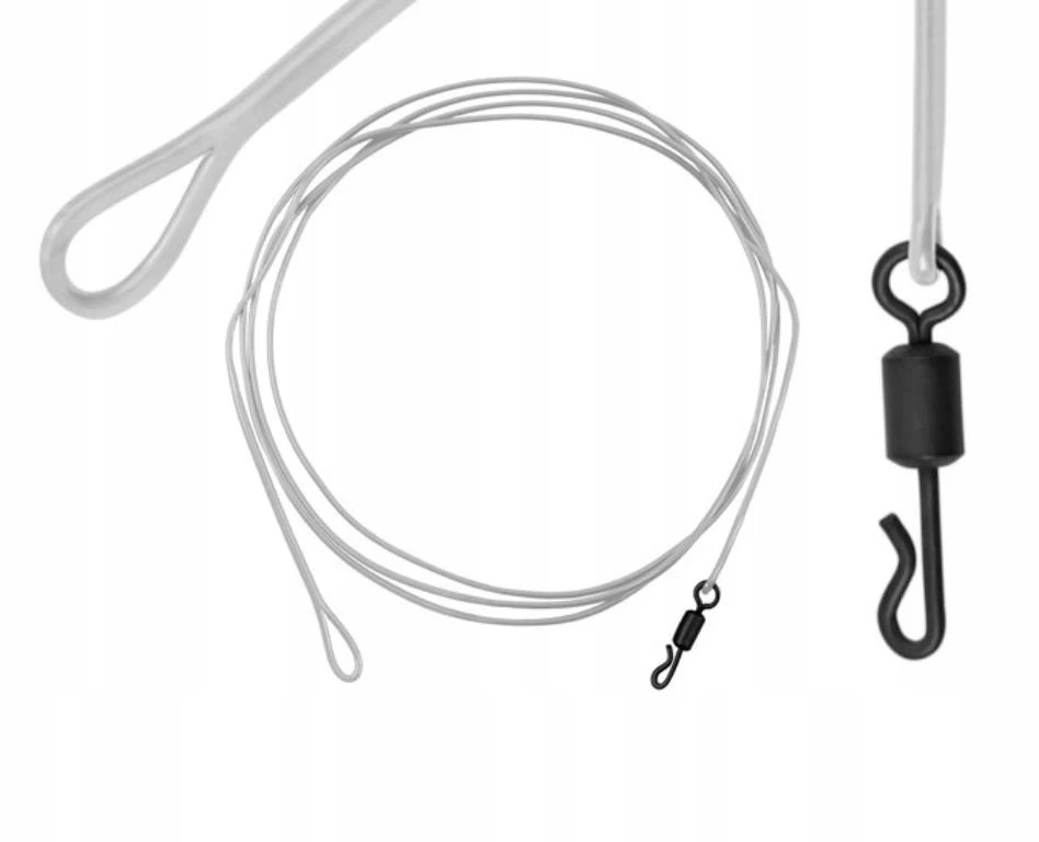 Zestaw ten przystosowany jest do najbardziej wymagających warunków, które można spotkać pod wodą. FLRcarbon Leader jest wykonany z przezroczystego fluorocarbonu najwyższej jakości o wytrzymałości do 30 lbs. Dzięki obróbce powierzchniowej jest niezwykle mocny i odporny na ścieranie. To właśnie te właściwości gwarantują, że wytrzymuje ostre krawędzie lub inne przeszkody pod powierzchnią wody. Jest wyposażony w krętlik z szybką wymianą na jednym końcu i pętlę do mocowania na drugim. Wszystko, co musisz zrobić, to nawlec klips za pomocą igły, dzięki czemu Leader jest gotowy do użycia. Dzięki swojej grubej średnicy jest również bardzo delikatny dla ryb podczas łowienia. Przezroczysty kolor zapewnia idealne połączenie zestawu końcowego z dnem, nawet w krystalicznie czystej wodzie, a tym samym będzie bardzo trudny do wykrycia przez ryby.