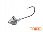 Jest to oryginalny jig z kołnierzem pro łowienia za pomocą miękkich sztucznych przynęt w kolumnie nebo tuż nad dnem. Jak sama nazwa wskazuje, kształt główki przypominający trójkąt jest bardzo aerodynamiczny i sprawia, że przynęta tworzy mniejszy opór w wodzie. Taki kształt umożliwia płynniejsze i łatwiejsze przesuwanie przynęty przez słup wody i jej delikatniejszą prezentację pro ostrożnych drapieżników. Dodatkowo kształt główki bardzo odpowiednio uzupełnia sylwetkę przynęty, dzięki czemu wygląda ona znacznie bardziej naturalnie. Do zabezpieczenia przynęty zastosowano cienki kołnierz, na którym se dwa rzędy obracanych wypustek w kształcie trójkąta, które niezawodnie utrzymują przynętę na miejscu. Oczywiście jest bardzo mocny haczyk z ostrym grotem.