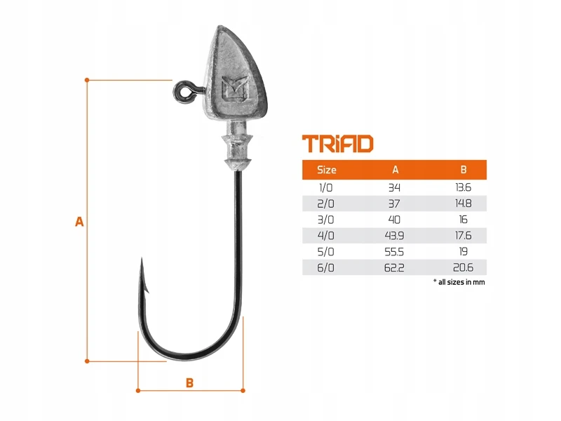 Oryginalny główka jigowa z kołnierzem do łowienia miękkimi przynętami w toni lub tuż nad dnem. Jak sama nazwa wskazuje, kształt główki jest trójkątny, aerodynamiczny, a przynęta stawia mniejszy opór. W ten sposób łatwo pokonuje podwodne przeszkody i płynniej porusza się w wodzie. Ponadto kształt główki bardzo dobrze komponuje się z sylwetką przynęty, dzięki czemu wygląda ona bardziej naturalnie. Główka ma cienki kołnierz z dwoma rzędami trójkątnych mikrozadziorów, które utrzymują przynętę na miejscu. Ponadto jest wyposażona w bardzo mocny i ostry hak.