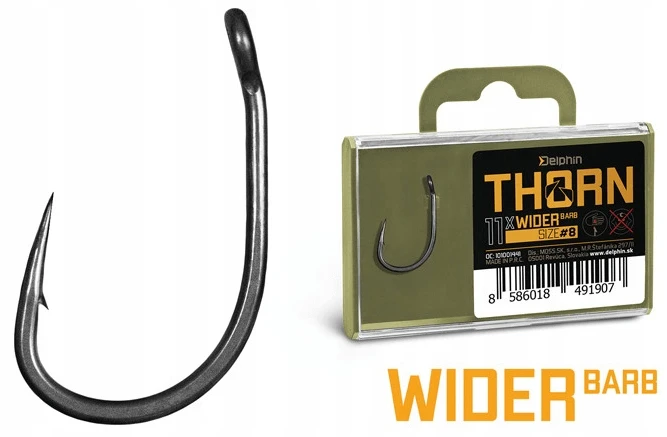 THORN Wider jest specyficzny ze względu na swój legendarny już kształt. Jest to haczyk charakteryzujący się szerszym łukiem i prostym ramieniem. Dzięki tym parametrom jest bardzo uniwersalnym i niezawodnym haczykiem, który można stosować do różnych przynęt.