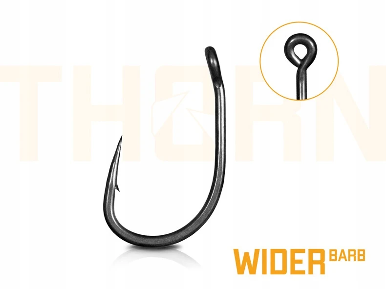 THORN Wider jest specyficzny ze względu na swój legendarny już kształt. Jest to haczyk charakteryzujący się szerszym łukiem i prostym ramieniem. Dzięki tym parametrom jest bardzo uniwersalnym i niezawodnym haczykiem, który można stosować do różnych przynęt.