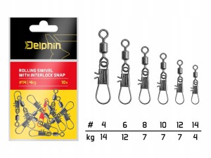 Wytrzymałe agrafki z krętlikiem do szybkiej i łatwej wymiany przynęt lub ciężarków. Płaska metalowa część i mocny drut zapewniają bezbłędne połączenie i mocne trzymanie. Krętlik zapobiega skręcaniu się żyłki podczas zwijania. Dostępny w sześciu rozmiarach o różnej nośności.