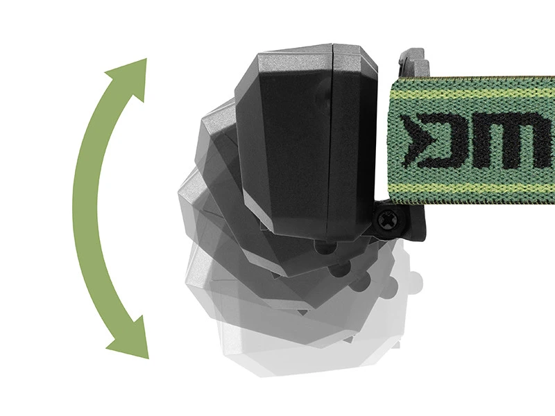 Białe światło oferuje trzy tryby świecenia. Jednokrotne naciśnięcie przycisku zasilania włącza czołówkę z intensywnością 20%, trwającą do 17 godzin. Ponowne naciśnięcie aktywuje drugi tryb z intensywnością 50% i jasnością 60 lumenów, zapewniając 9-godzinną żywotność baterii. Trzecie naciśnięcie przełącza na najmocniejszy tryb o intensywności 100%, trwający 5 godzin. Dłuższe przytrzymanie przycisku aktywuje zielone światło, które ma dwa tryby. W pierwszym trybie świeci z intensywnością 100% przez 12 godzin, a ponowne naciśnięcie przycisku zmniejsza intensywność do 50%, wydłużając żywotność baterii do niewiarygodnych 40 godzin. Jedną z zalet zielonego światła jest to, że nie przyciąga irytujących owadów, co jest szczególnie przydatne podczas gorących letnich wieczorów.