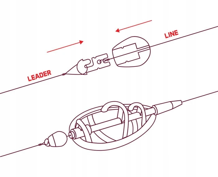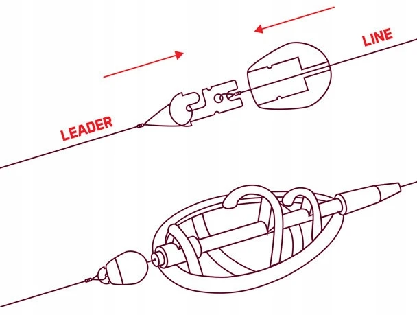 Dodatkowo produkt ten występuje w stylowym bordowym kolorze z czarnym ołowiem pokrytym czerwonymi plamkami. Do tego koszyczka dołączony jest krętlik szybkowymienny z blokadą bezpieczeństwa oraz gumowa tuleja antysplątaniowa.