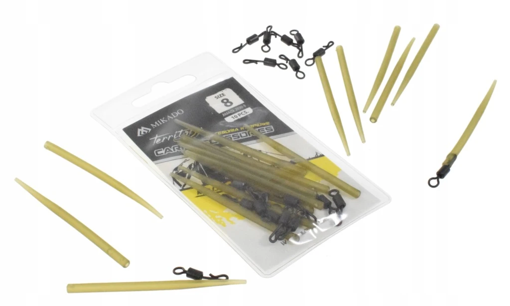 Komplet krętlika wyposażonego w szybko złączkę, wraz z zabezpieczającą go rurką antysplątaniową. Zestaw wykorzystywany w konstrukcji wszystkich antysplątaniowych przyponów karpiowych. Niezbędny podczas rzutowego połowu.