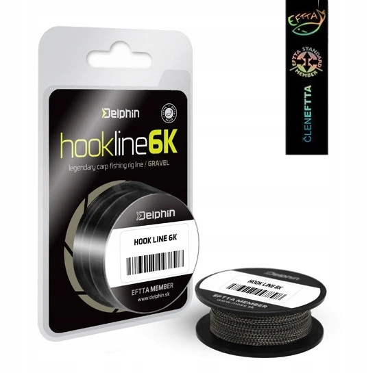 Hooklink 6K to pierwszorzędna plecionka tonąca od firmy Delphin. Składa się z 6 mikrowłókien, co gwarantuje jej wysoką niezawodność. Powierzchnia plecionki nie jest dodatkowo modyfikowana. Zwiększoną sztywność osiąga się wyłącznie przez grube splatanie. Z uwagi na to, że 6K nie jest modyfikowana na swojej powierzchni, nie zmienia swoich właściwości przy użyciu. Jest przeznaczona do produkcji przyponów karpiowych, zarówno dla tonących jak i pływających przynęt. Kolor kamuflażu doskonale komponuje się z dnem, umożliwiając naturalną prezentację przynęty.