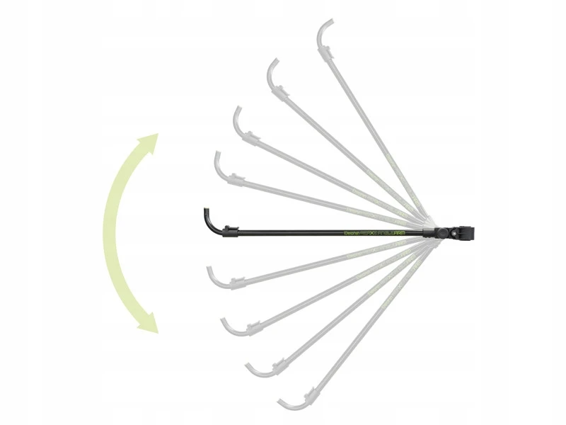 Specjalny przegubowy mechanizm obrotowy pozwala na ustawienie ramienia w różnych pozycjach, niezależnie od tego, czy chcemy łowić ze szczytówką przy powierzchni wody, czy skierowaną ku górze. Ramię jest teleskopowe, można je regulować za pomocą klipsa zabezpieczającego i używać z wędkami o różnych długościach. Mechanizm ten zwiększa ogólną wszechstronność produktu, dzięki czemu ramię jest przydatne w różnych sytuacjach nad wodą.