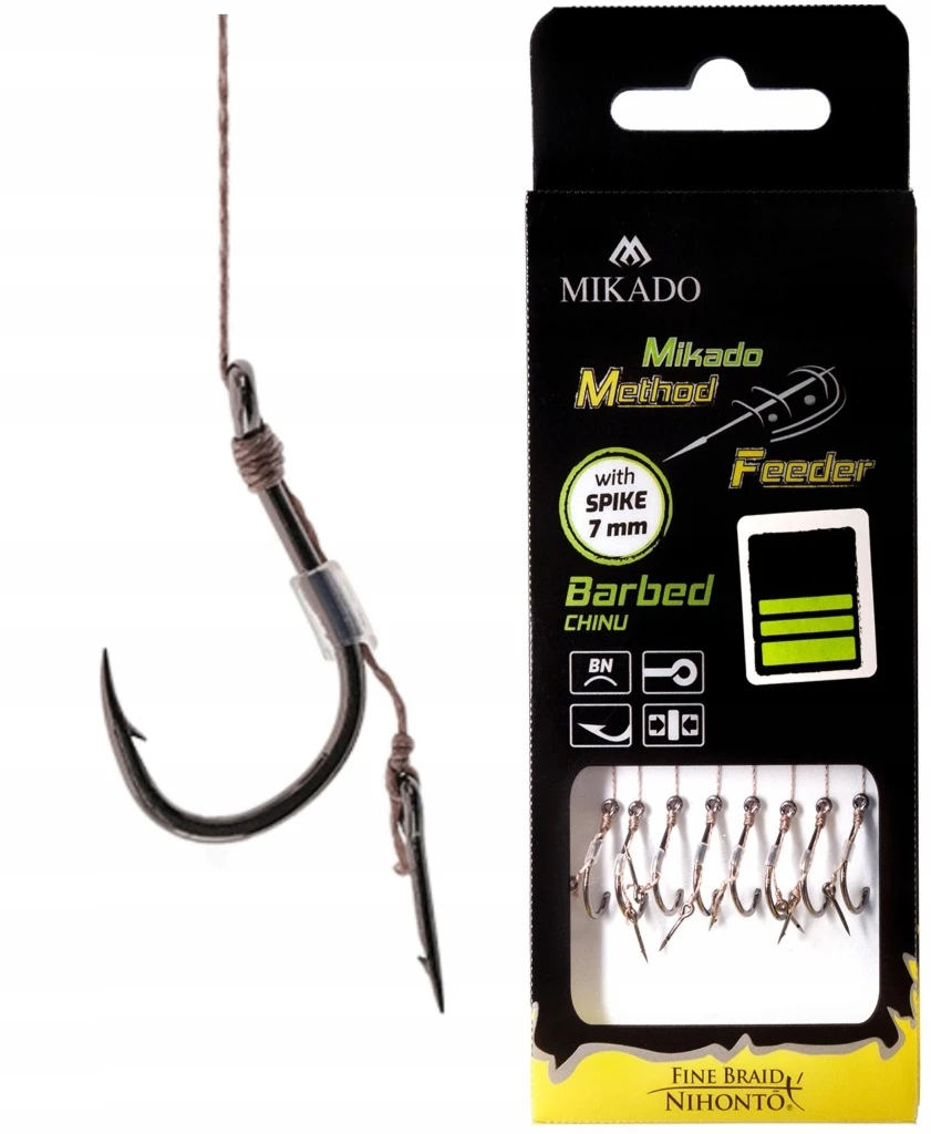 Najwyższej klasy przypony do łowienia metodą method feeder, czyli z podajnikiem zanętowym. Wyposażone zostały w specjalną igłę z zadziorem, zamontowaną na włosie. Dzięki czemu zakładanie przynęt, nigdy nie było prostsze, wystarczy wbić igłę w przynętę i lekko przekręcić żeby zablokować zadzior.