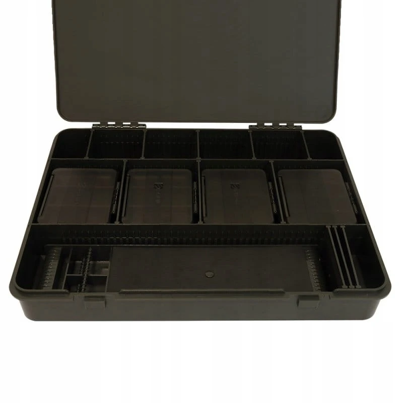Największe z serii LOKBOX pudełko dla wędkarza, który lubi przenosić wiele różnych akcesorii wędkarskich. LOKBOX™ LARGE LOADED BOX jest wyposażony w osiem wewnętrznych pudełek do przechowywania (patrz poniżej), każde z miejscem na krętliki, haczyki, pierścienie do przyponów, koraliki itp. Ponadto dostępna jest dwustronna owinięta tablica na przypony i 20 szpilek do tablicy przyponowej . Idealne pudełko na długie wyjazdy zagraniczne. Każde pudełko z asortymentu LOKBOX™ zostało zaprojektowane z bezpiecznymi zakładkami zamykającymi Click-Lok.