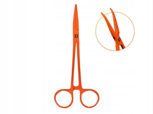 Szczypce Delphin ATAK! REFLEX z zakrzywionymi szczękami to narzędzie do bezpiecznego wyjęcia haczyka z pyska ryby. Wewnętrzna część szczęki jest ząbkowana, aby prawidłowo chwycić hak. Szczypce wykonane są z wysokiej jakości stali i mają jaskrawy pomarańczowy kolor, co sprawia, że są od razu zauważalne wśród innego sprzętu wędkarskiego. Do tego na głównym przegubie znajduje się czarne logo Delphin.