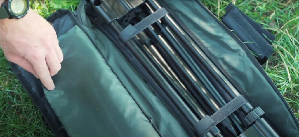 Podstawowy pakiet zawiera buzz bary na 2 wędki. Regulacja ich wysokości jest możliwa za pomocą śrub. Długość można regulować od 50 do 75 cm. Stojak dostarczany jest w wodoodpornej walizce transportowej. Transport to kolejna z niesamowitych cech tego modelu. Jak tylko dostaniesz torbę z tak małym rodpodem, już nigdy nie będziesz chciał nosić ze sobą większego i cięższego rodpoda!