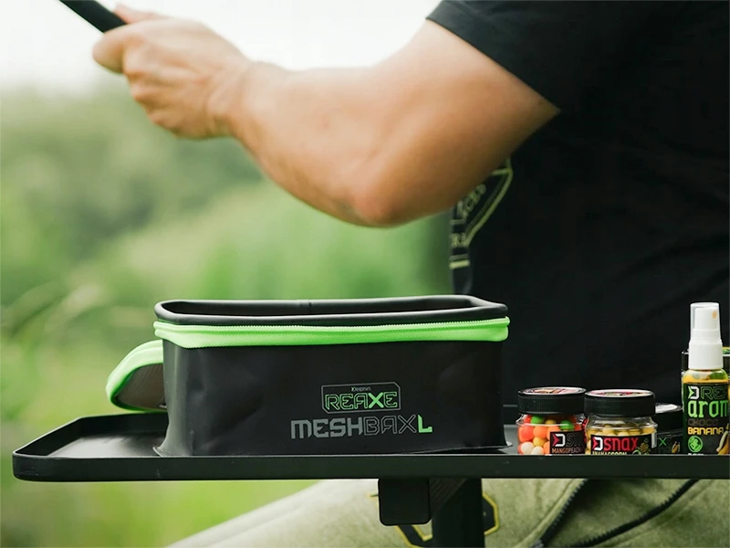 MeshBAX może być używana jako wszechstronna torba na małe akcesoria wędkarskie, przynęty, dipy lub inne elementy.