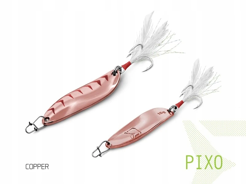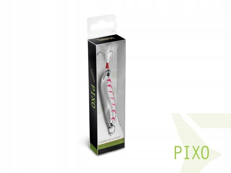 Błystka z serii Delphin PIXO to idealna przynęta do połowu większych drapieżników, takich jak szczupaki, sandacze, bolenie. Korpus wykonany ze stopu cynku. Błystka ma wysokiej jakości solidny potrójny haczyk ze specjalną technologią, aby łatwiej przebić się przez twarde pyski drapieżników. Posiada również karabińczyk FAST LOCK SNAP dla szybszej wymiany przynęty. Przynęta ta jest odpowiednia również na mniejsze drapieżniki, zwłaszcza na jeziorach lub rzekach. PIXO to bardzo atrakcyjna przynęta o wklęsłym kształcie korpusu imitująca żywą rybę.