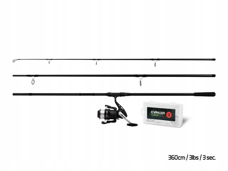 Sercem zestawu jest trzyczęściowe wędzisko YAKUZA o długości 360 cm i akcji parabolicznej, które pozwala w pełni cieszyć się holem nawet mniejszych karpi lub innych ryb. Naturalnie, wędka ma odpowiedni zapas mocy, aby poradzić sobie z większymi okazami oraz z precyzyjnymi rzutami na miejsce łowienia.